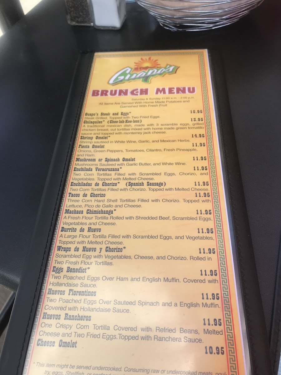 Tostadas with eggs, ground beef, beans, and cheese. Topped with ranchera sauce. Served with Mexican rice and refried beans on the side.